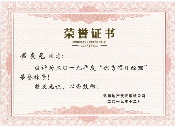 2019年(黃炎元)被弘陽地產(chǎn)評為“優(yōu)...